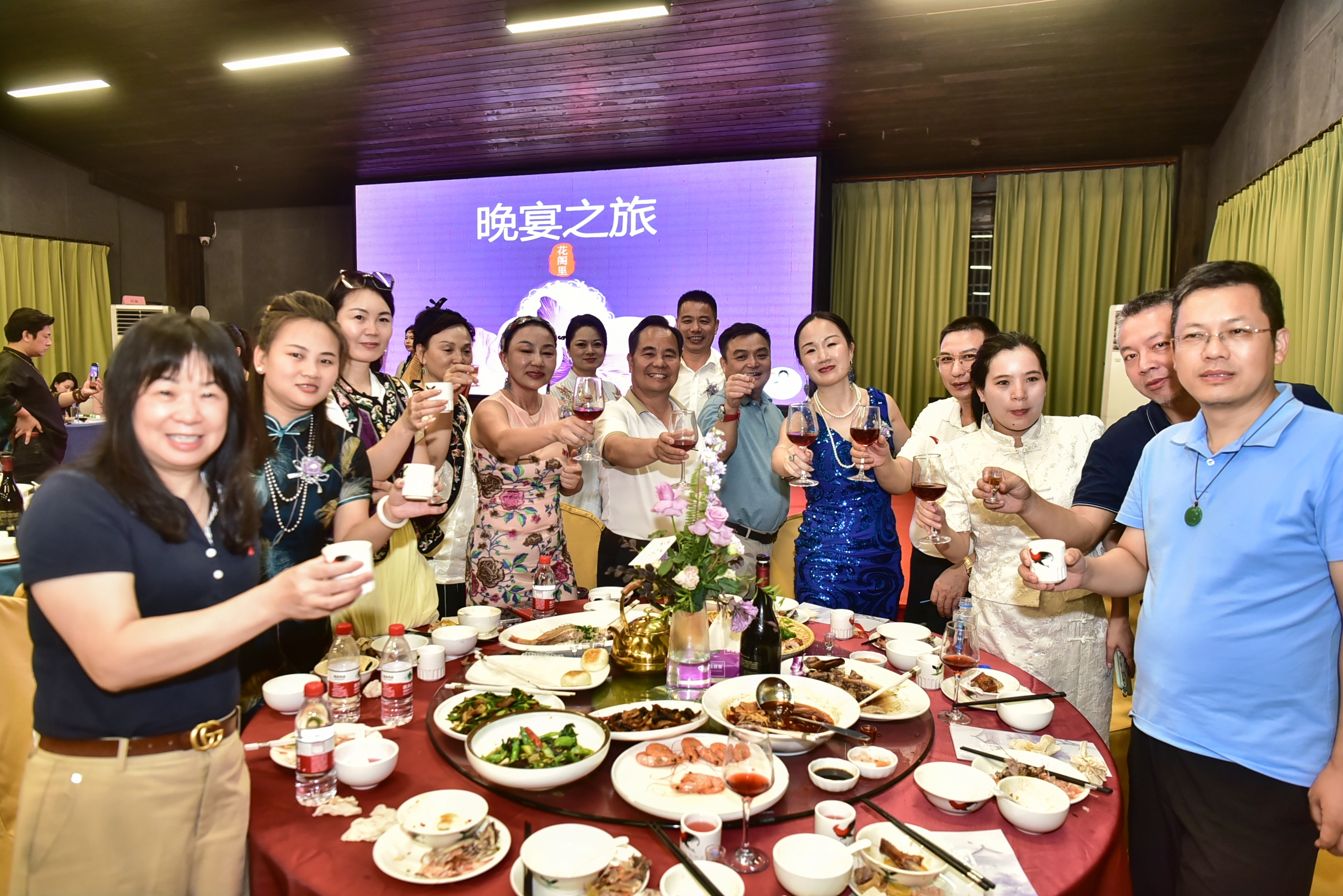 夜幕降临,晚宴的古风舞蹈、笙箫合奏等节目轮番上演,将中式美学的雅致与灵动展现得淋漓尽致。致辞祝酒环节,创始人与核心嘉宾共同喊出“花阁里 因爱而生 为美好而来”的口号,将庆典氛围推向高潮。