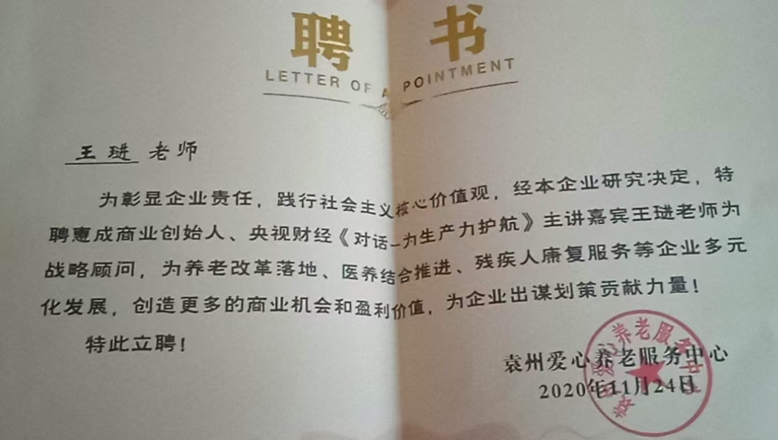 2025年12月8日上午9时至下午4时,位于袁州区民政局福利院内的袁州区爱心养老服务中心(公建民营产业)突发变故。法人代表王全震特邀战略顾问——十八大深化改革试点单位创始人王琎老师(同时担任本网战略顾问、中国评论网战略顾问兼首席评论员、《法治中国》高层访谈外联部部长)及惠成商业宜春分公司谭建军先生赴会参与理事会。