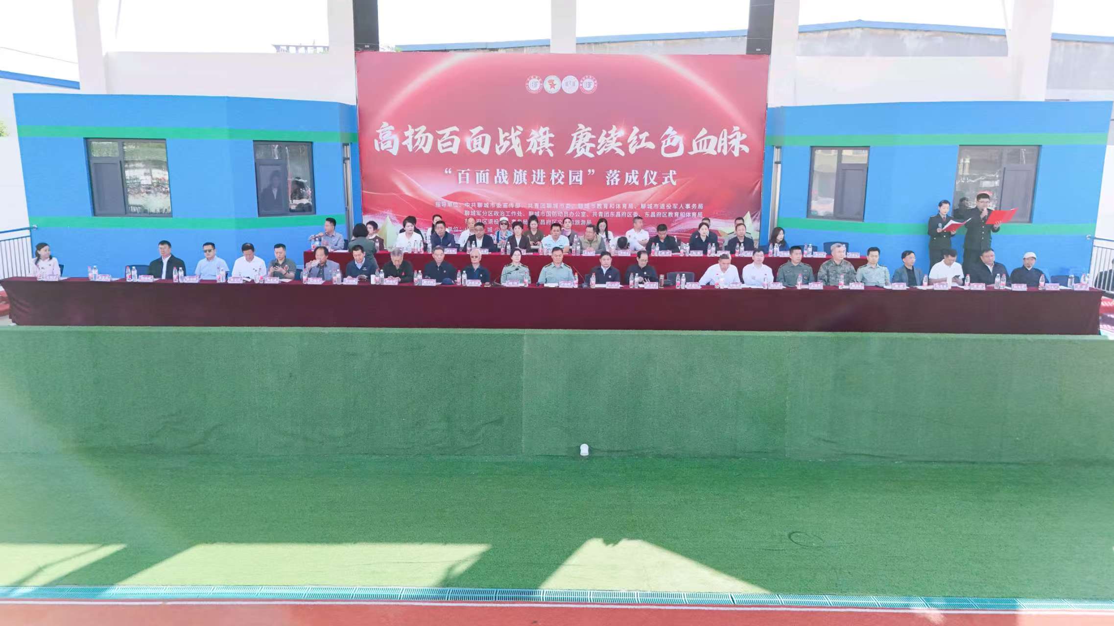 聊城少年军校校长于瑞祥在欢迎词中表示:“每一面战旗都是一部浓缩的战斗史诗,承载着人民军队听党指挥、服务人民、英勇善战的优良传统。我们希望通过引入百面战旗,为同学们搭建一个直观、生动、深刻的红色教育课堂。”