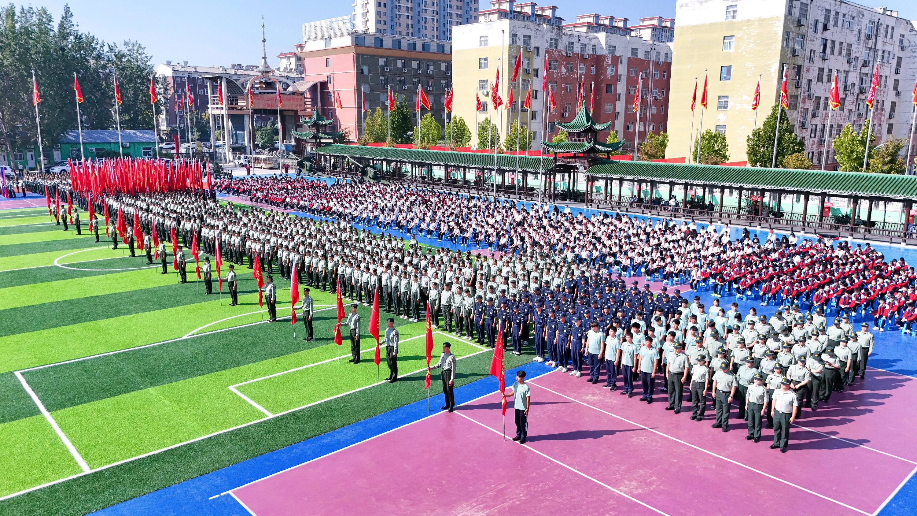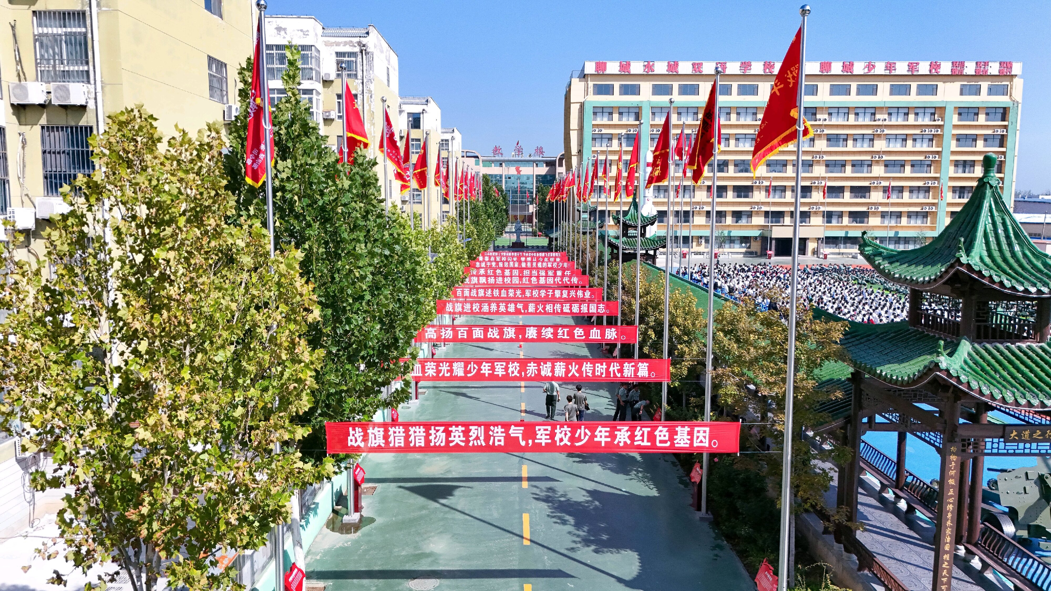 【时代热点聚焦】2025年9月20日,山东聊城少年军校隆重举办“百面战旗进校园”落成仪式。此次活动旨在通过展示百面荣誉战旗,深化红色教育,打造国防教育特色品牌,引导青少年铭记历史、崇尚英雄、砥砺品格、报效祖国。