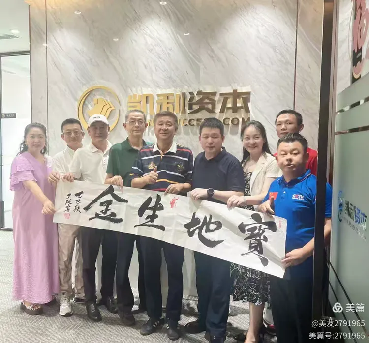 10月5日上午,金阳洒落,深圳这座创新之都熠熠生辉。正值国庆中秋双节交汇之际,应曾泳老师之邀,惠成商业创始人、央视财经《对话-为生产力护航》主讲嘉宾、共产党员网《两学一做》教育课件辅导专家、深圳市合生隆投资发展有限公司董事局主席、富商国际控股集团战略顾问兼独立董事王琎老师,携手银行家李明度等一行,走进凯利资本的大门。在易粉道RWA全球产业生态联盟主席、世界青商大会深圳执委会秘书长、深圳汇率金融服务有限公司董事长、易粉之家品牌生态创始人梁景国及高管团队的热情接待下,众人共聚一堂。梁总对市场趋势、行业格局与行情脉动的深刻剖析,如清泉流淌,令人顿感金融与科技共生共荣的热土已然铺展。此次会面,围绕社会主义核心价值观引领下的经济发展路径,在道路自信、理论自信、制度自信与文化自信的基石上,就RWA市场化实践打造世界样板达成高度共识。王琎老师特携《宝地生金》作品而来,九人并肩立于“凯利资本”标识前,手中“金生地宝”横幅随秋风轻扬,宛如无声誓约——在这片改革前沿的沃土之上,财富正从智慧与实干的根脉中破土而出。大理石墙映照出坚定身影,庄重之中跃动希望,预示着一场关于RWA产业赋能与商业顶层设计的思想盛宴即将启幕。
