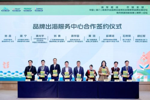 随后,“品牌出海服务中心”正式揭牌,南州集团、澳门创健集团、普新集团、世界贸易网点联盟、北京盈科(横琴)律师事务所、澳门中医药学会等多家机构代表签署合作协议,为推动农业品牌走向葡语国家、欧盟等市场搭建服务平台。