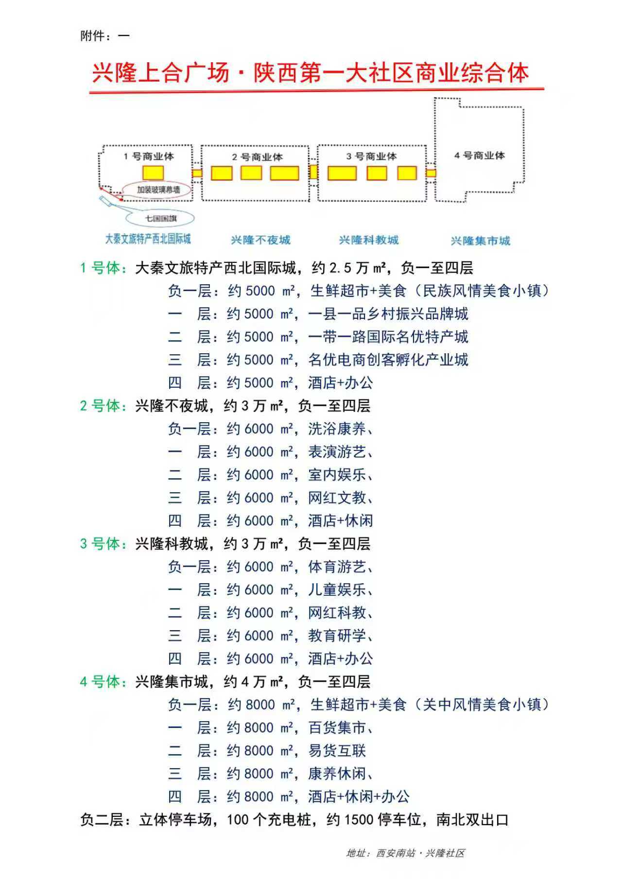 启动仪式上,大秦文旅集团李总介绍了项目整体运营招商规划,提及兴隆上合广场规划有四大商业体(大秦文旅特产西北国际城、兴隆不夜城、兴隆科教城、兴隆集市城),各商业体分楼层布局生鲜、文旅、科教、休闲等多元业态,还配备立体停车场等配套设施(具体业态规划可参考项目附件)。项目将依托这一规划,打造多功能现代化产业园,并紧扣对外文化贸易、乡村振兴相关政策,布局嵌入式地方特色综合体。