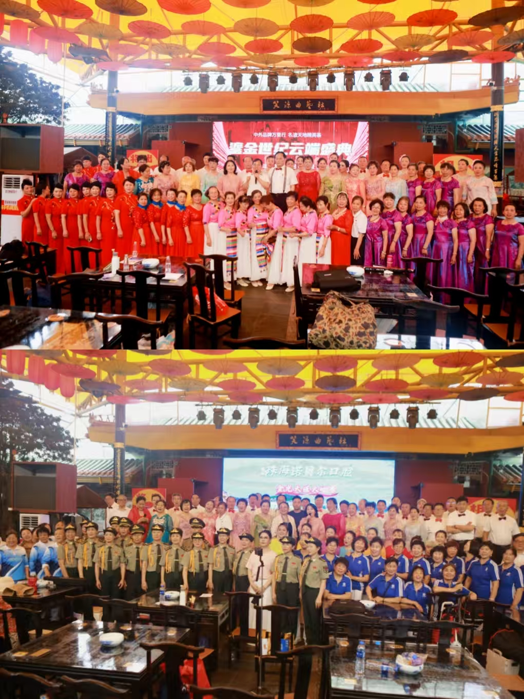 紧随启动仪式,鎏金世纪云端盛典・金光大道大舞台在珠海圆明新园成功举办,活动由珠海诺贝尔口腔和新疆旺源驼奶倾情赞助,现场汇聚 50 余支优秀演艺团队,八百名多演员同台献艺,场面盛大、反响热烈。《好运来》《敖包相会》《祝福祖国》《走进新时代》等经典歌舞,气势恢宏、正能量满满,充分展现湾区文化风采与全民艺术热情。舞台聚光展风采,鎏金大道耀湾区;一城精彩,全域共鸣。